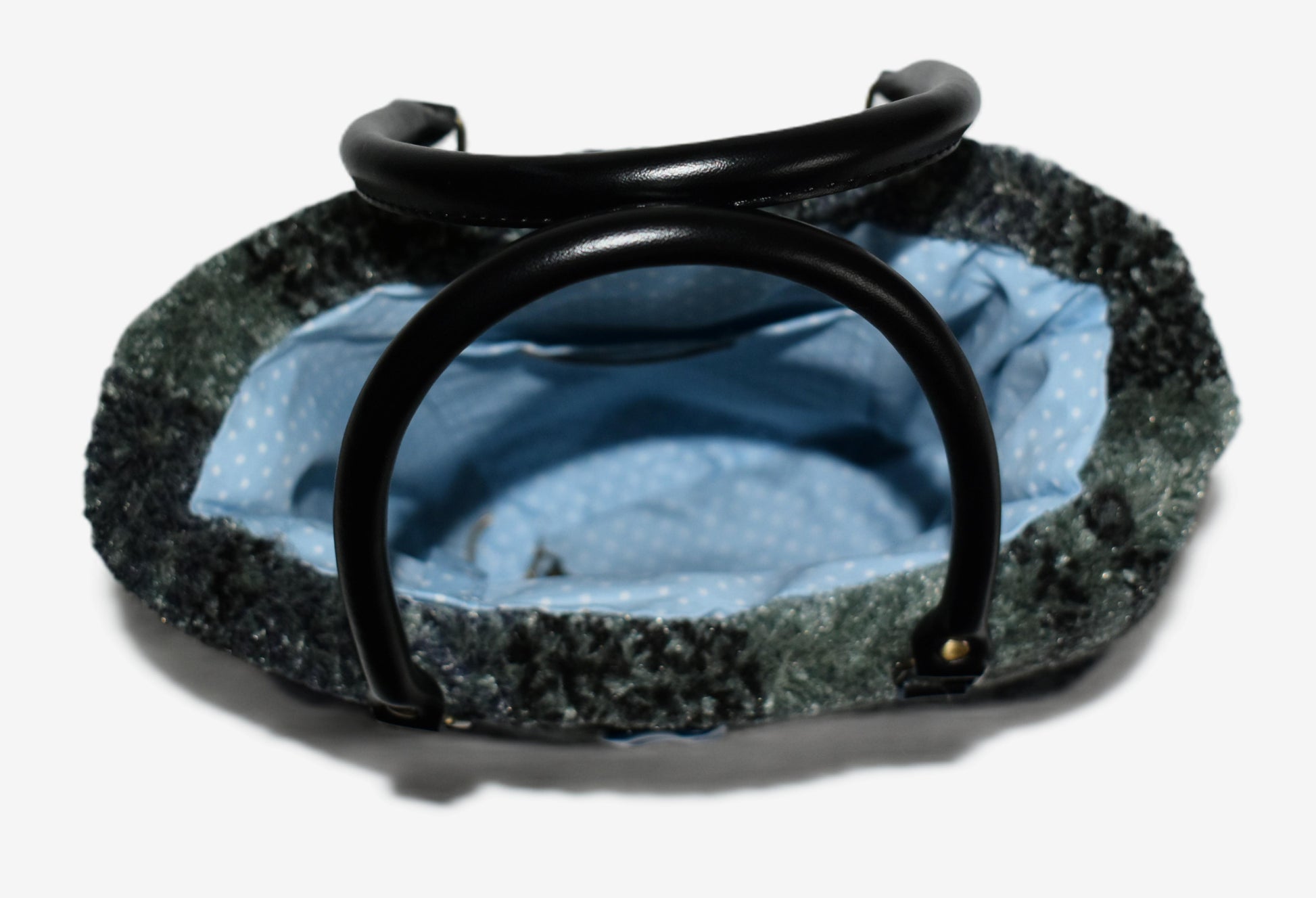 Moorland Pause is the tote that carries tradition with a wink. Handmade from genuine wool carpet in rich blue and green tartan, her brushed texture and classic check evoke windswept hills and fireside tales. The silhouette is softly structured, framed by black leather handles that add polish and practicality.